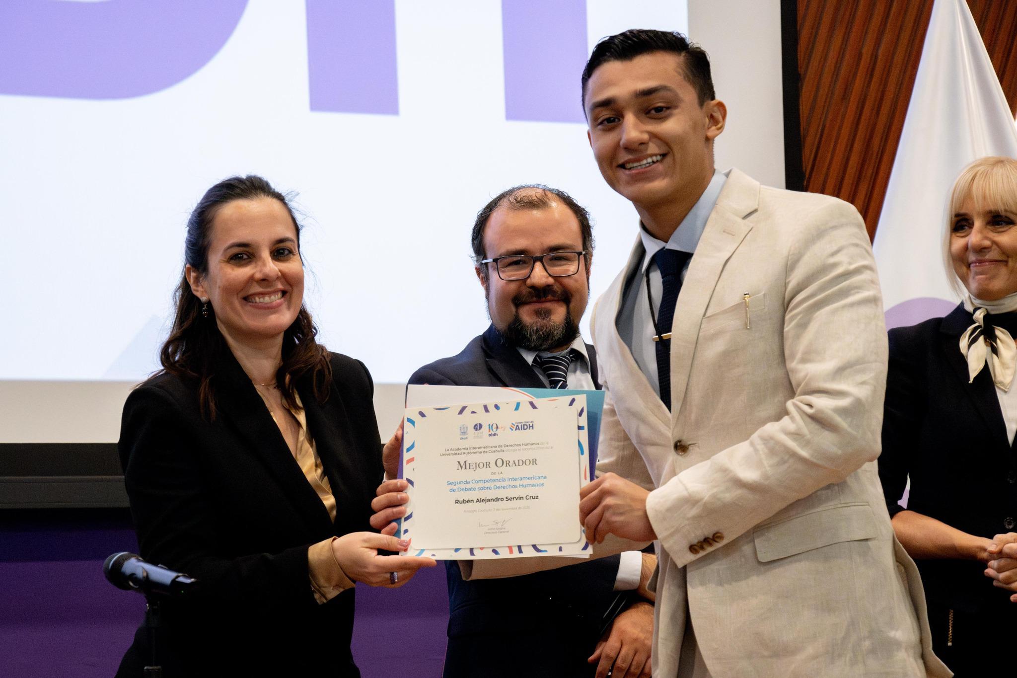Las actividades del Festival AIDH se cerraron esta semana, con broche de oro, con dos actividades académicas de suma relevancia: la primera fue la Segunda Competencia Interamericana de Debate sobre Derechos Humanos. Esta competición se llevó a cabo del 3 al 7 de noviembre; más de 50 personas estudiantes, provenientes de universidades de Coahuila, Ciudad de México, Oaxaca, Nuevo León y Yucatán se dieron cita en la Casa Morada para participar en un importante y retador ejercicio académico que fomenta la argumentación jurídica y la reflexión crítica sobre los desafíos actuales en derechos humanos.