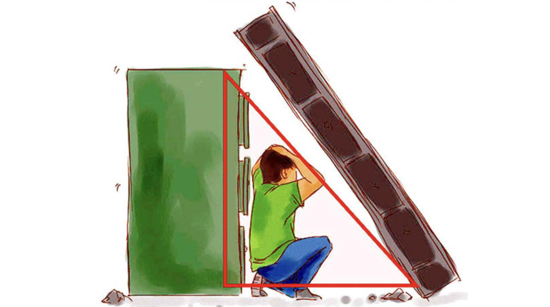 El concepto fue popularizado por Doug Copp, un rescatista estadounidense, quien aseguraba que durante un colapso estructural, las personas sobrevivían más al acostarse junto a muebles resistentes (como camas, escritorios o sofás) en lugar de resguardarse debajo de ellos. La idea es que, al caer los escombros, se forme un “triángulo” de espacio vital donde el cuerpo podría quedar protegido.