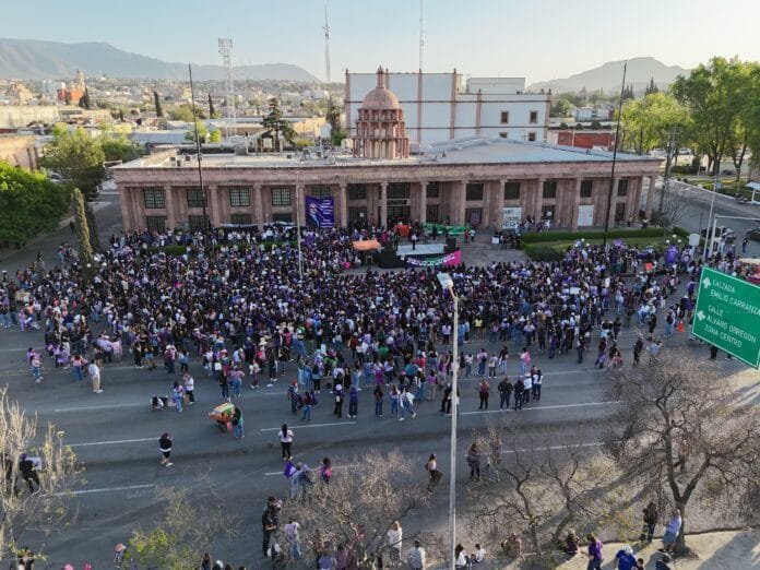 Este 8 de marzo, Saltillo se pintó de morado con una ola, integrada por miles de mujeres y niñas, que inundó las principales calles de la ciudad.