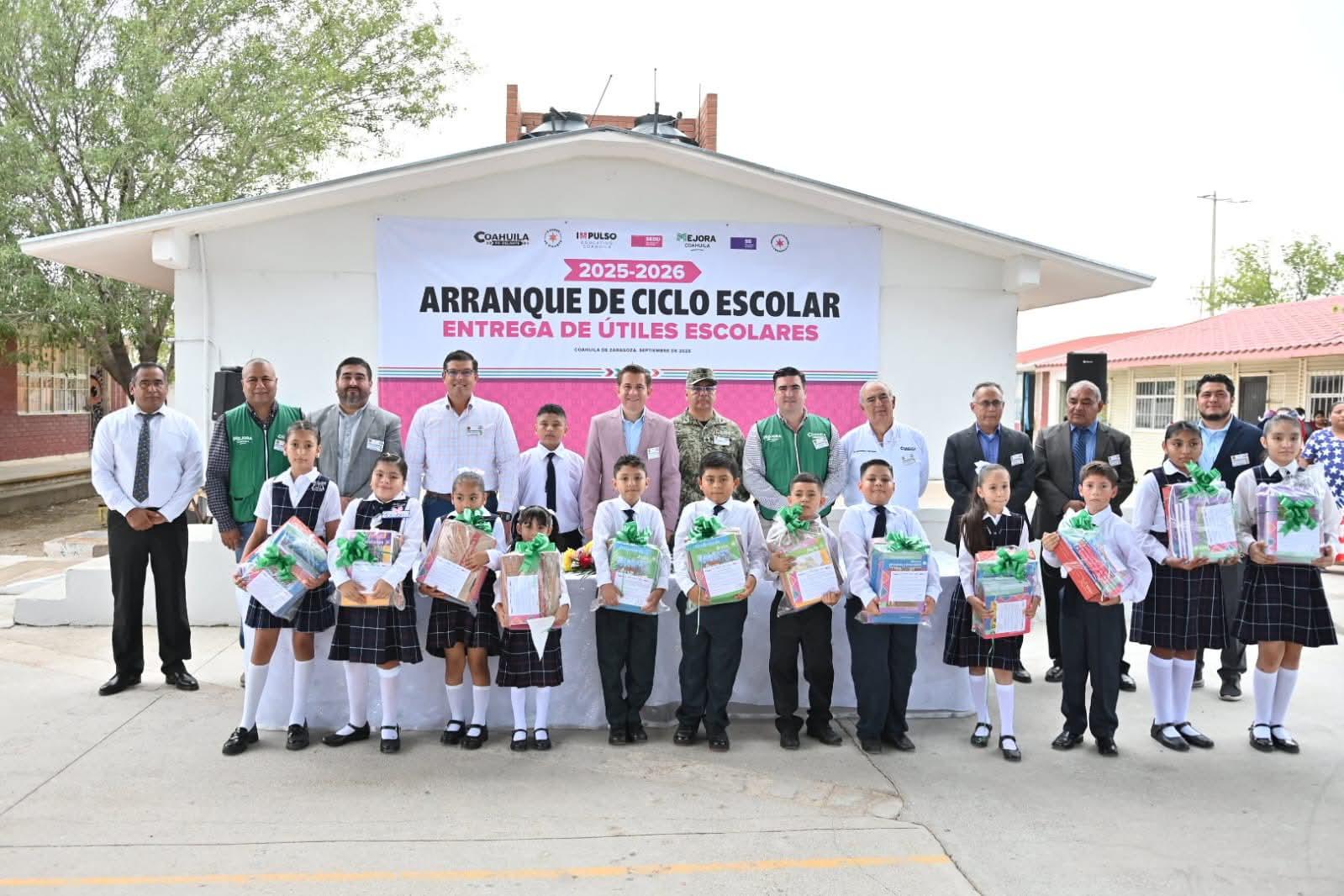 ACUÑA, COAH.-Con el arranque del ciclo escolar 2025–2026, el Gobierno del Estado entregó paquetes de útiles escolares y libros de texto gratuitos a más de 34 mil estudiantes de nivel básico en 200 planteles de los municipios de Acuña y Jiménez.