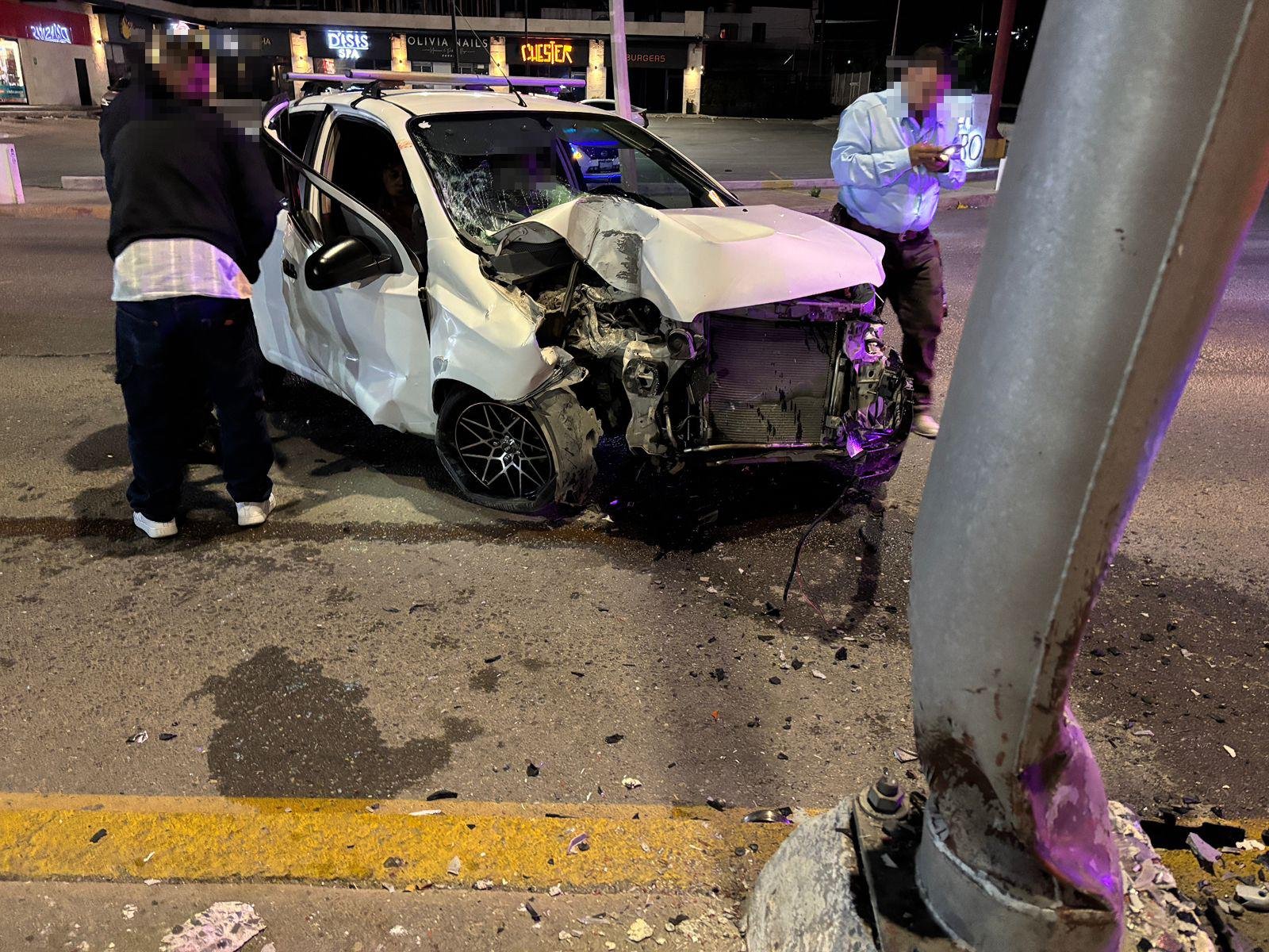 Dos jóvenes resultaron lesionados en un accidente vehicular cuando el conductor, que transitaba a exceso de velocidad y presuntamente bajo los influjos del alcohol, perdió el control del vehículo e impactó de manera aparatosa contra una luminaria, en Saltillo.