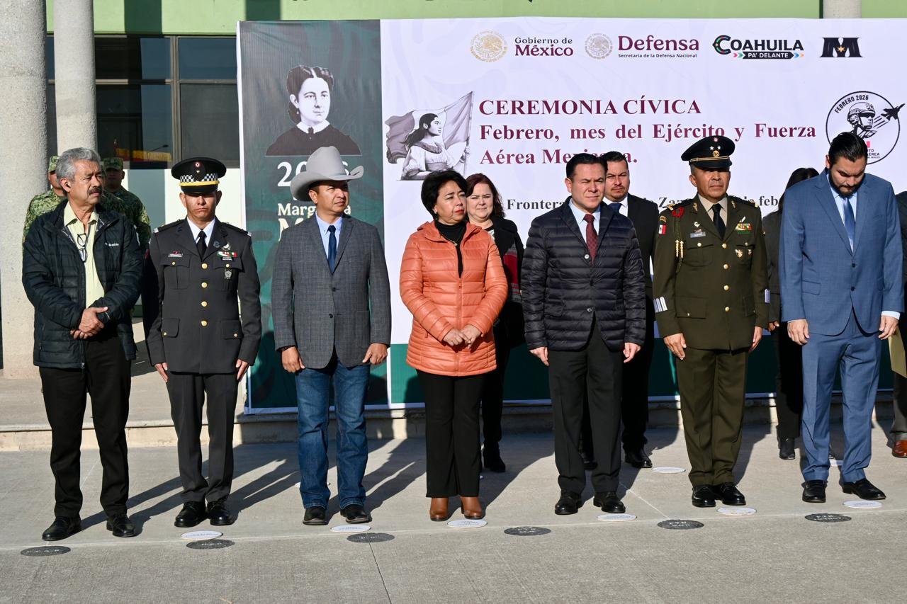 En el marco del mes del Ejército y Fuerza Aérea Mexicana, ademas de la conmemoración de un aniversario más de la Promulgación de la Constitución Política de los Estados Unidos Mexicanos de 1917, la alcaldesa de Nadadores, Alejandra Huerta Alemán, participó en la ceremonia cívica realizada en las instalaciones del 105 Batallón de Infantería, ubicado en el municipio de Frontera, Coahuila.