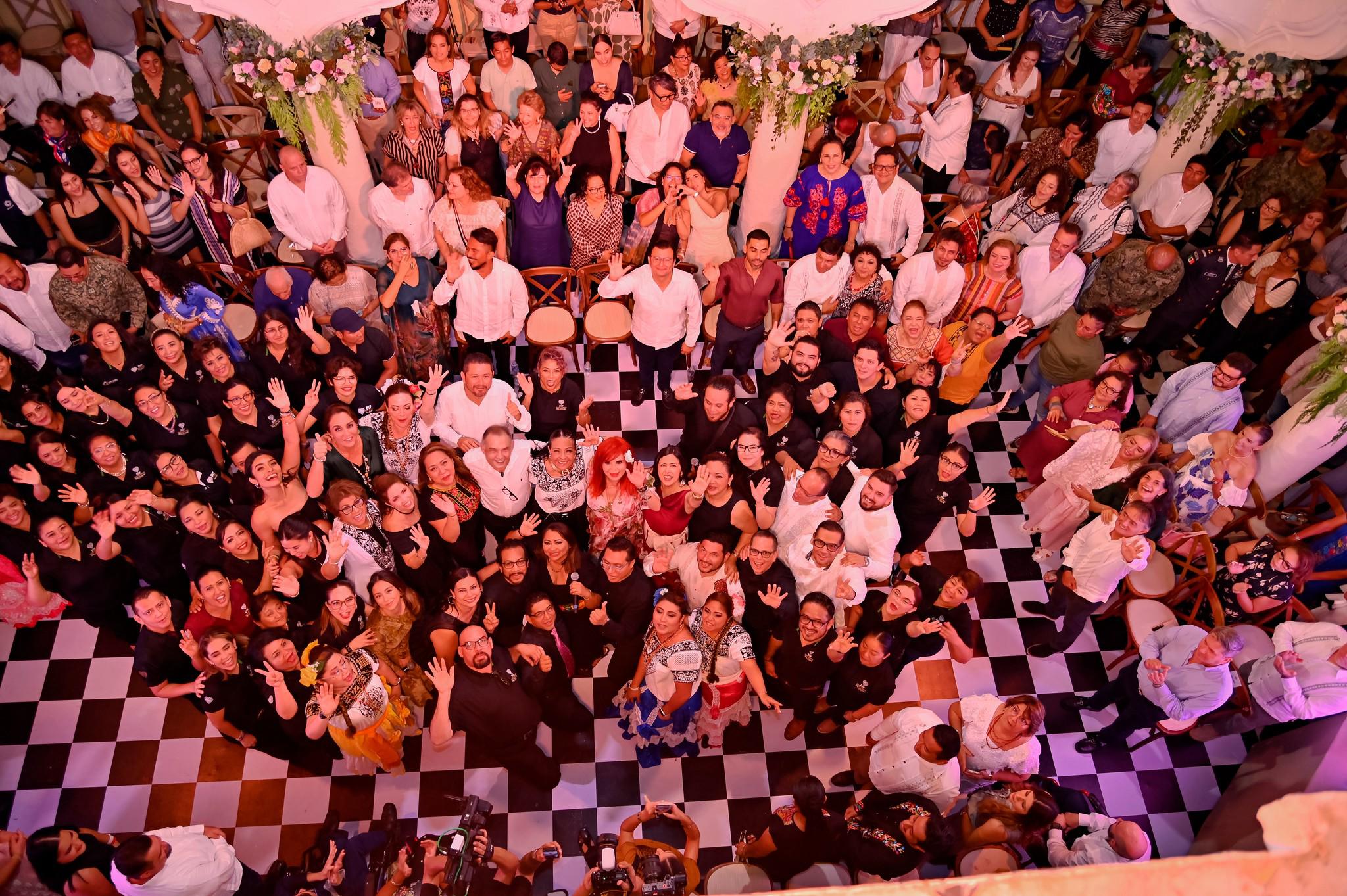 Sansores continuó con “Volver, volver” de Vicente Fernández, “Oye, abre tus ojos” de la Sonora Dinamita y “La vida es un carnaval” de Celia Cruz, para abordar el compromiso de servicio.