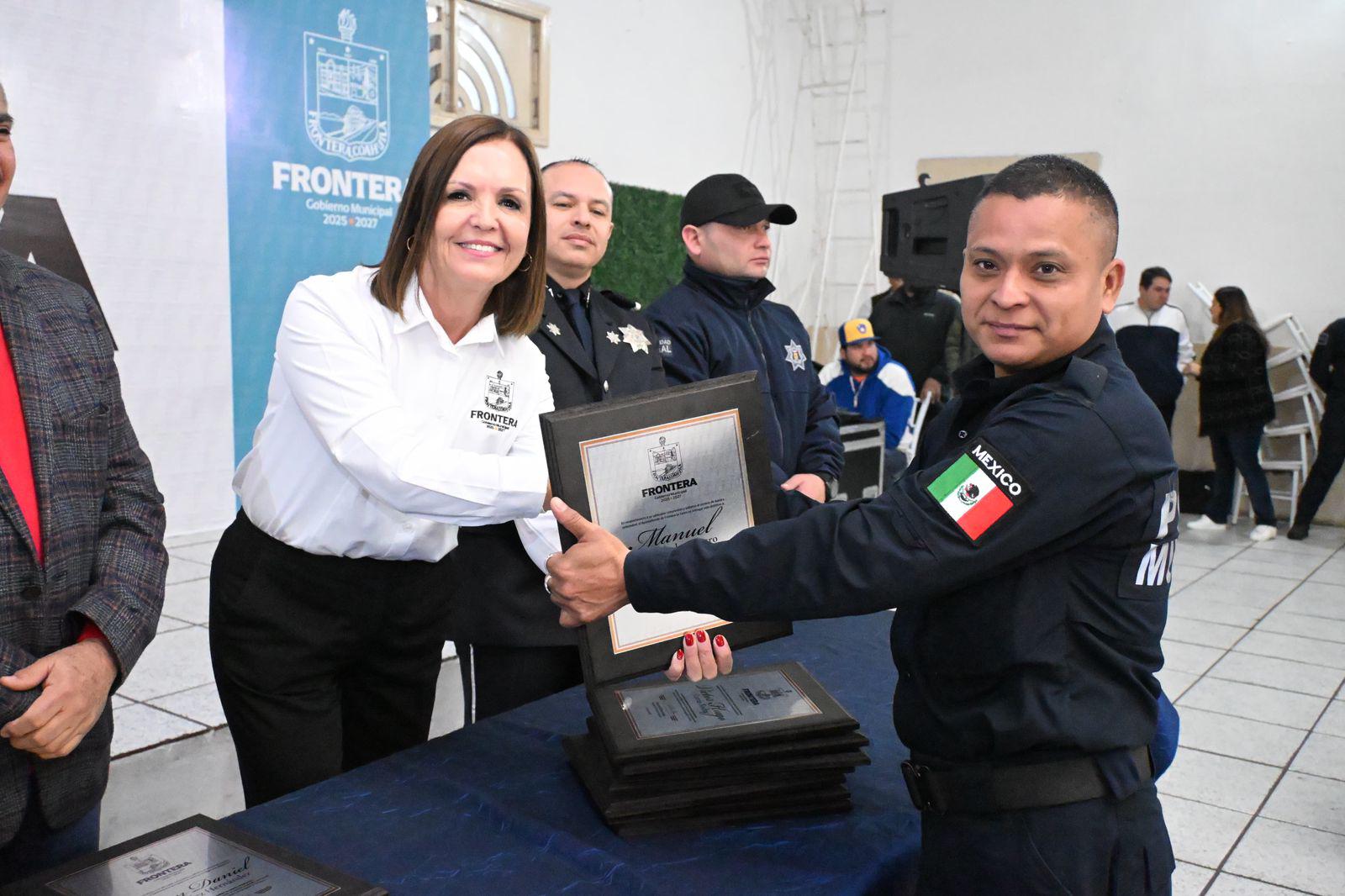 FRONTERA, COAH.- En el marco de la celebración del Día del Policía, la alcaldesa de la Ciudad del Riel, Sara Irma Pérez Cantú, ofreció un desayuno como agradecimiento y reconocimiento a las fuerzas de seguridad del municipio.