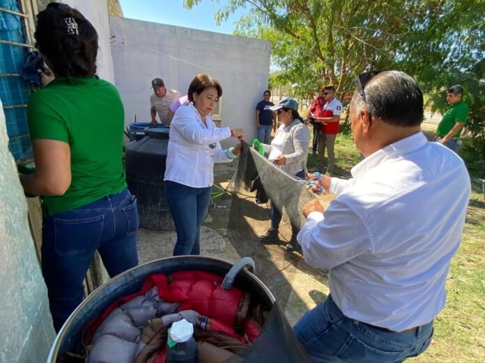 La alcaldesa Alejandra Huerta destacó el descubrimiento hecho durante la visita. “En un recorrido que hicimos, nos percatamos en primera instancia que todas las cisternas están destapadas, por lo que aplicamos abate en cisternas y contenedores de agua», explicó. «Además, instalamos tela mosquitera en ventanas y puertas, pues casi nadie tiene este tipo de protección”.
