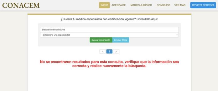La denuncia contra la doctora Daiana Moreira de Lima, quien trabaja en la Torre Médica Bosco, señala que, aunque cuenta con una cédula de médico general, no posee los certificados vigentes para especialidades como cirugía plástica o dermatología. La fuente, una persona afectada que prefiere el anonimato, corroboró con el Comité Normativo Nacional de Consejos de Especialidades Médicas (CONACEM) que la profesional no tiene certificación vigente en su página en línea.