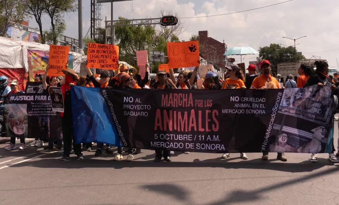 CDMX.- Un grupo de aproximadamente 300 personas marchó desde el Mercado de Sonora hasta el Zócalo capitalino para exigir un alto al maltrato animal y el cierre de establecimientos donde se comercializan especies vivas, principalmente con fines rituales.