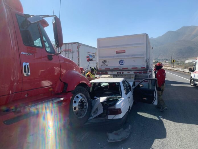 Un fuerte accidente múltiple se registró en el kilómetro 31+200 de la carretera libre Monterrey–Saltillo, en los carriles con dirección a la capital coahuilense, frente al restaurante El Pariente.
