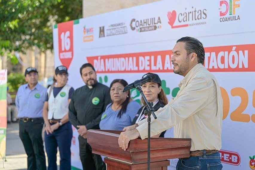 MONCLOVA, COAH.- En el marco del Día Mundial de la Alimentación, el alcalde Carlos Villarreal acompañó a Rolando Villarreal, presidente del Consejo de Cáritas Región Siderúrgica, en el arranque de la Colecta Nacional “Alimenta” 2025, organizada a nivel nacional por el Banco de Alimentos de México (BAMX) y Cáritas.