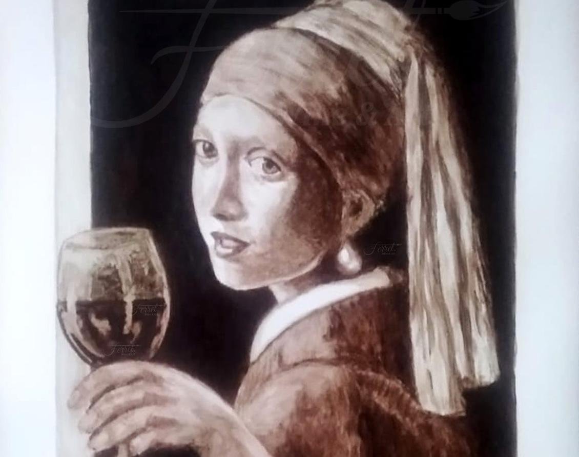 Valdés, quien usa el nombre artístico de Ferret, ubica a un puñado de artistas en toda América que utilizan una técnica similar. “Hay pocos pintores que usan la técnica del vino y aún menos que usan el vino de jamaica”, aseguró. Él, por su parte, trabajó el género del retrato, replicando obras famosas como “La joven la perla” y “La dama del armiño”, así como escenas de rodeo.