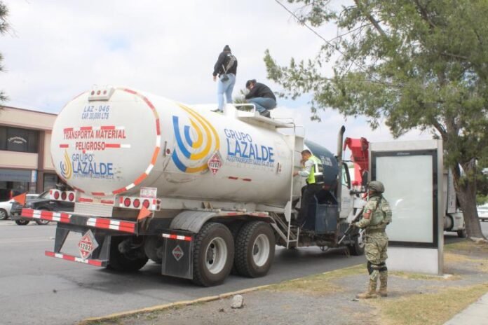 Según información extraoficial, el operativo se realizó alrededor de las 9:00 horas en la carretera federal 57, en el tramo Saltillo-Monclova, específicamente a la altura del kilómetro 63, en el entronque hacia el ejido Fraustro. En ese punto, los agentes marcaron el alto a una pipa marca International HV con capacidad para 20 mil litros.