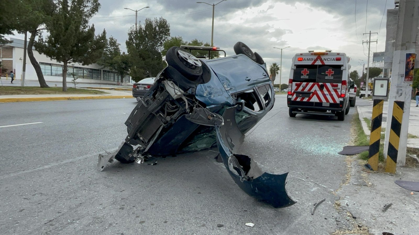 Ambos jóvenes fueron valorados por paramédicos de la Cruz Roja tras sufrir golpes durante la volcadura. De acuerdo con los primeros reportes, el conductor de una camioneta les habría cerrado el paso, provocando que perdieran el control del auto.