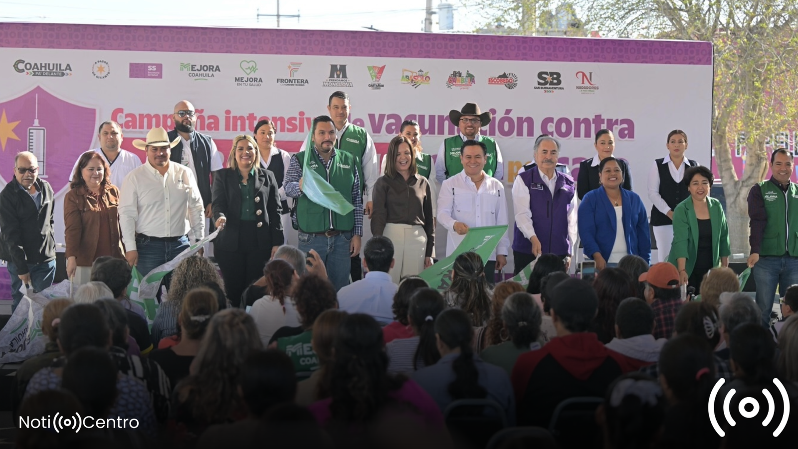 La orden del Gobernador Manolo Jiménez es clara: ningún niño sin vacuna. Alcaldesas y Alcaldes de la Región Centro-Desierto, junto al Secretario de Salud, Dr. Eliud Aguirre, lanzaron una Campaña Intensiva de Vacunación que no esperará a que la gente vaya al hospital; la salud irá a las casas.