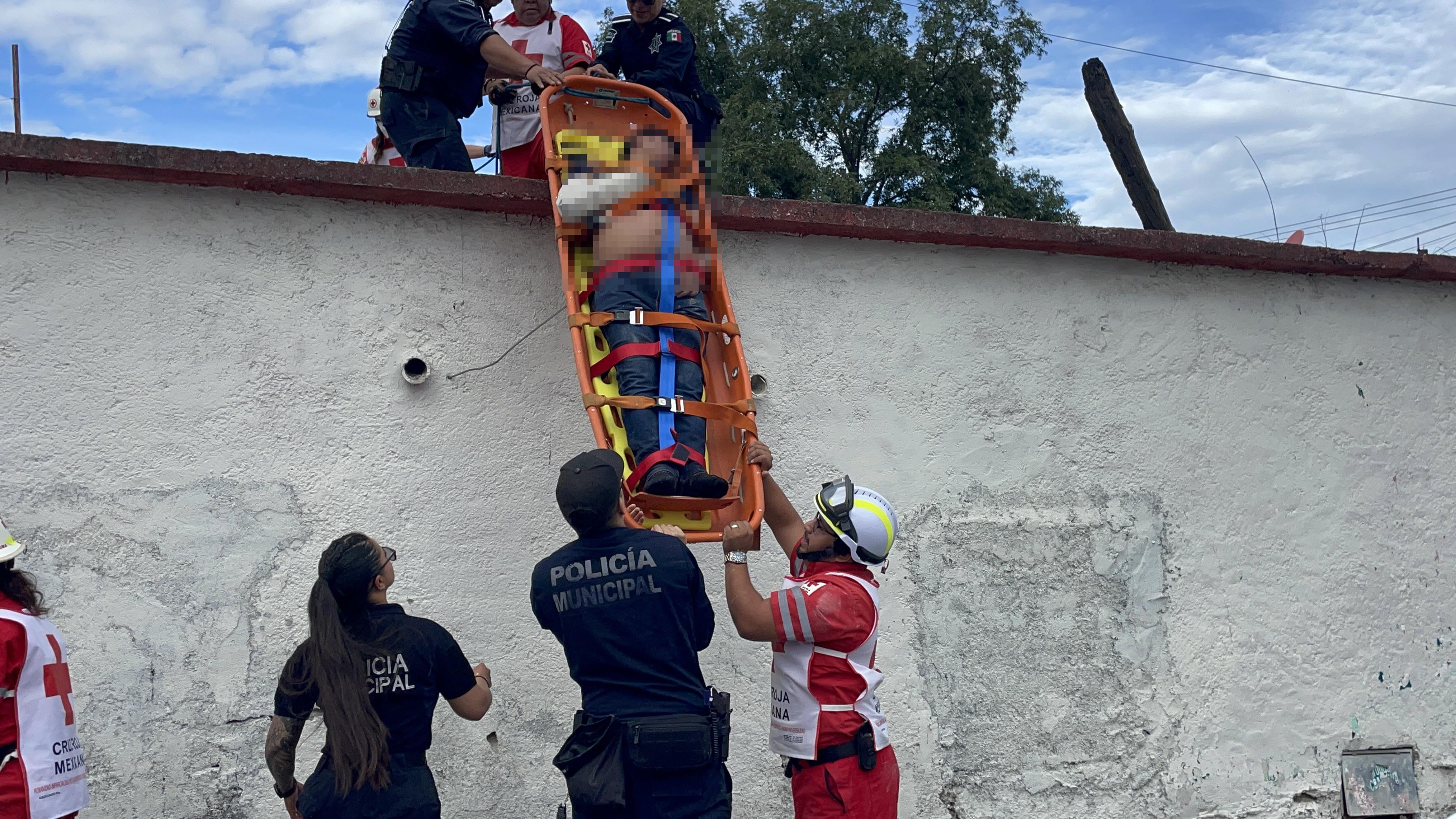 Los socorristas llegaron en una ambulancia, pero debido a que el lugar no tenía acceso directo, fue necesario solicitar un camión de rescate para extraer al hombre con una canastilla, posteriormente bajarlo y colocarlo en la camilla para trasladarlo al hospital.