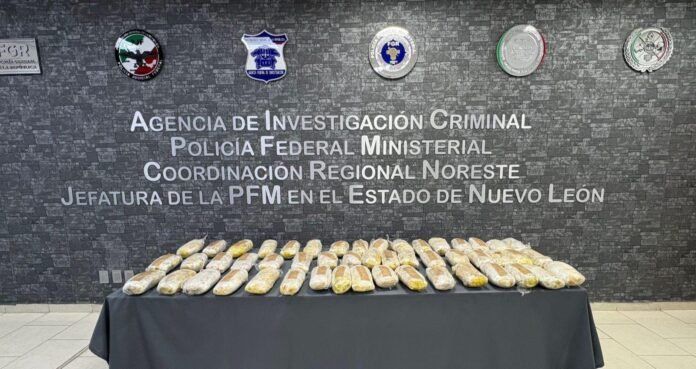 La Fiscalía General de la República (FGR) informó que elementos de la Policía Federal Ministerial (PFM), de la Agencia de Investigación Criminal (AIC), aseguraron a la persona y 50 paquetes de una sustancia cristalina con las características de la metanfetamina, en Linares.