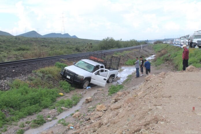 El percance ocurrió cuando el chofer de una Chevrolet blanca de redilas, que se desplazaba de norte a sur sobre la carretera federal a Zacatecas, se desvió hacia la derecha al llegar a la altura del ejido San José de la Joya. El asfalto mojado le hizo salirse de la vía y acabar en un terreno baldío lleno de agua, a unos metros de las vías del tren.
