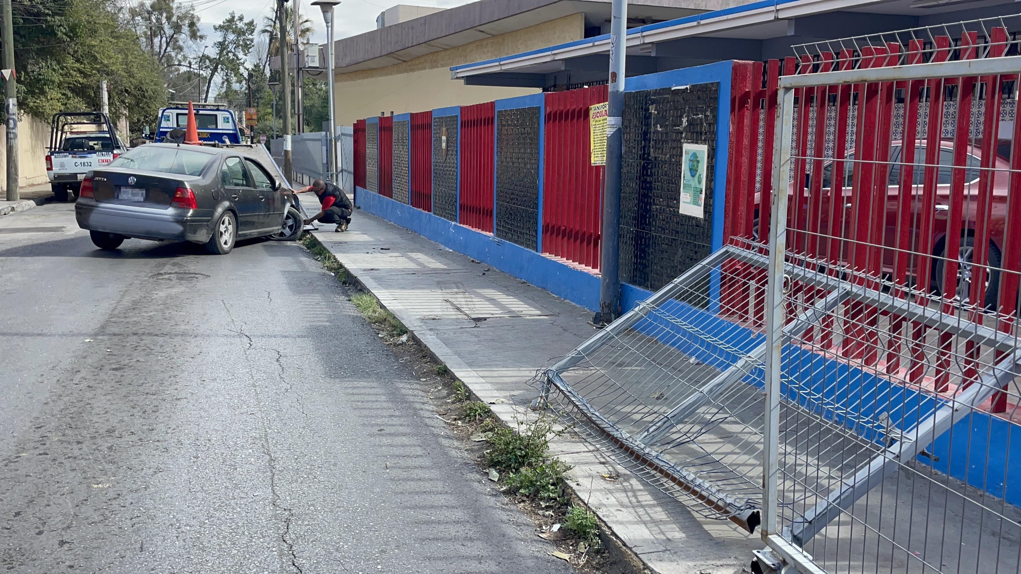 El accidente ocurrió sobre la calle Salazar, cuando Fernando Javier N., de 23 años, circulaba en dirección a la calle Miguel Ramos Arizpe. Al llegar al cruce con Cristóbal Colón, el cansancio lo venció, perdió el control del automóvil y giró bruscamente hacia la derecha. Esto provocó que subiera a la banqueta y derribara parte de la cerca que protege a los estudiantes del plantel.