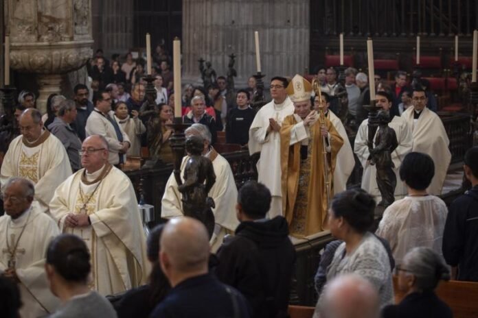 CDMX.- El arzobispo primado de México, Carlos Aguiar Retes, dirigió un mensaje de Navidad en el que pidió que los migrantes, refugiados y quienes sufren los horrores de la guerra sientan, en esta temporada, paz y amor, durante la misa celebrada este 25 de diciembre en la catedral de México.