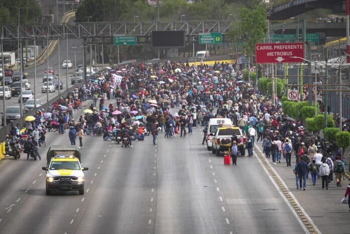 Maestros de Chiapas, Guerrero, Michoacán y la Ciudad de México realizan manifestaciones en accesos al Aeropuerto Internacional de la Ciudad de México (AICM), en Paseo de la Reforma, así como en las casetas de las salidas hacia Toluca, Estado de México y Cuernavaca, Morelos.