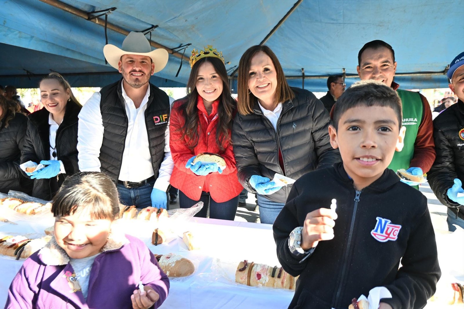 En el marco de la celebración del Día de Reyes, la alcaldesa de Frontera, Sara Irma Pérez Cantú, encabezó la tradicional partida de la Rosca de Reyes en la plaza La Lagunita, donde se reunieron numerosas familias fronterenses para compartir este símbolo de la festividad y disfrutar de un delicioso chocolate caliente.