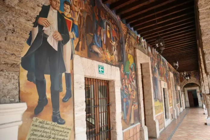 Considerado el mural más grande de México hecho por una mujer, con más de 500 metros cuadrados distribuidos en el perímetro del patio central de la histórica casa, esta obra refleja el desarrollo de la región desde antes de la colonización española hasta el presente en que fue pintado, incluyendo momentos clave de la historia del país en los que la capital coahuilense fue parte.