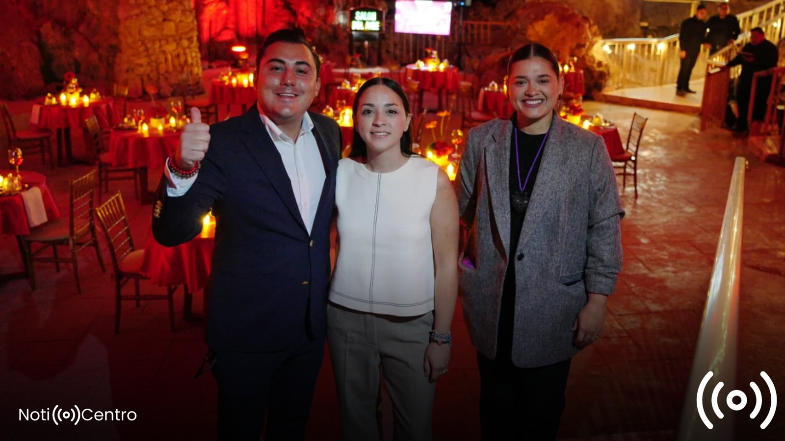 Las 15 respuestas más emotivas ganaron su lugar en la mesa junto al alcalde y su esposa, Ana Paula Ríos. La velada inició a las 19:00 horas con una alfombra roja, arreglos florales y la bienvenida del Mariachi Sonidos de Monterrey, creando una atmósfera mágica entre estalactitas y estalagmitas.