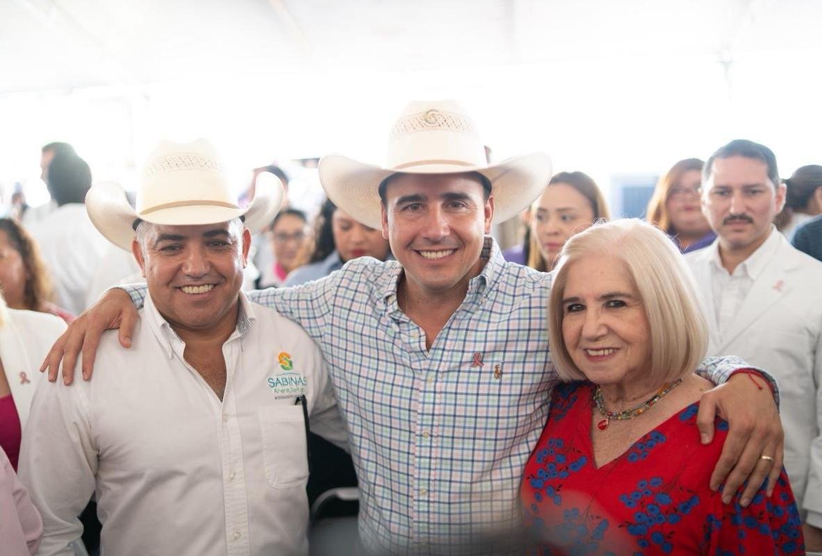 El alcalde José Feliciano “Chano” Díaz Iribarren, junto a la presidenta honoraria del DIF Sabinas, Alma Iribarren Madrigal, y la directora del DIF Municipal, Aida Aracely Iribarren Madrigal, acudieron este martes 21 de octubre al Mineral de Palau, en el municipio de Melchor Múzquiz, para acompañar al gobernador Manolo Jiménez Salinas y a la señora Paola Rodríguez López, presidenta de Inspira Coahuila, durante la Brigada “Estar bien, cuidado de la salud de la mujer”.