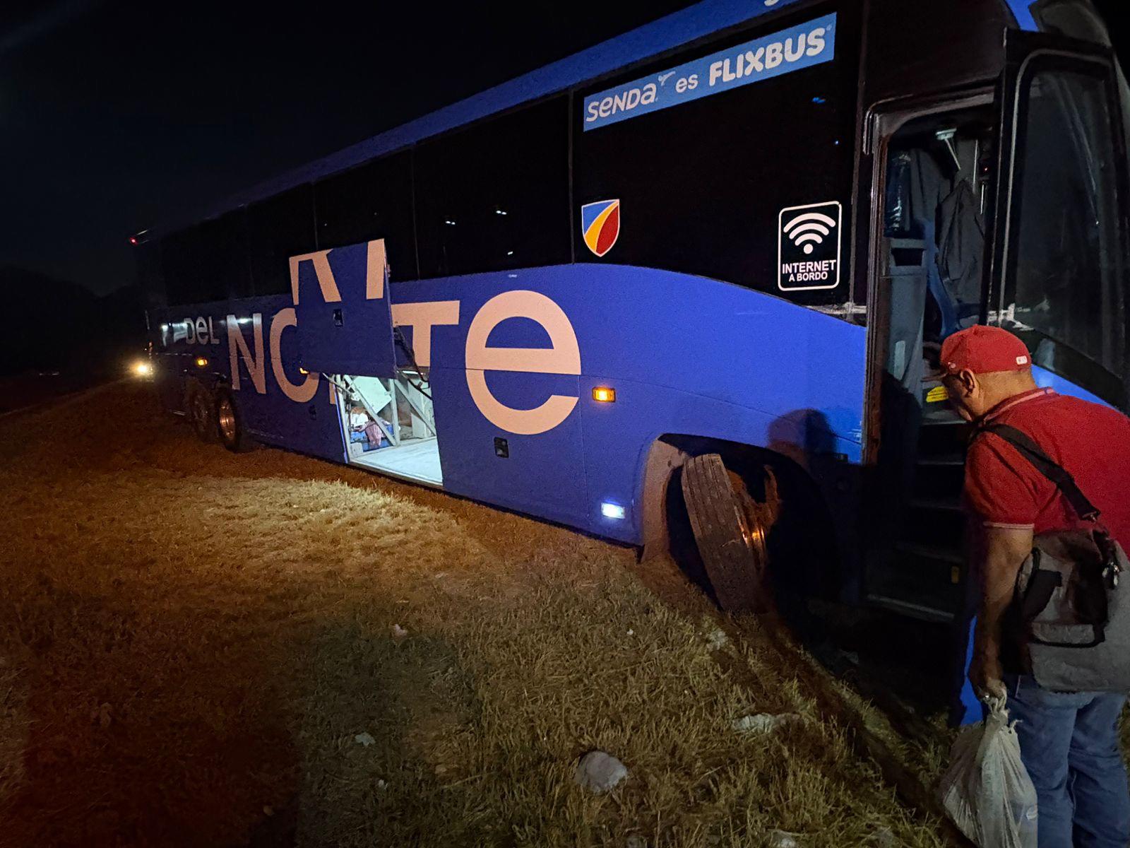 Momentos de susto y desesperación vivieron decenas de pasajeros de un camión de ruta foránea que sufrió un choque y salida de camino en el kilómetro 29 de la carretera Monterrey–Saltillo.