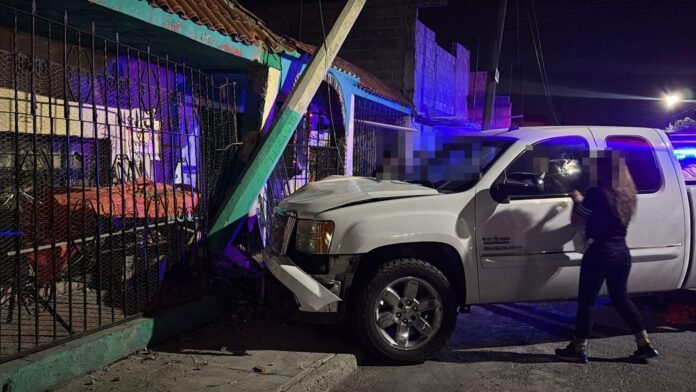 El conductor de una camioneta GMC pick up terminó impactándose contra un poste de concreto y una vivienda al perder el control del vehículo en calles de la colonia San Ramón, en Saltillo.