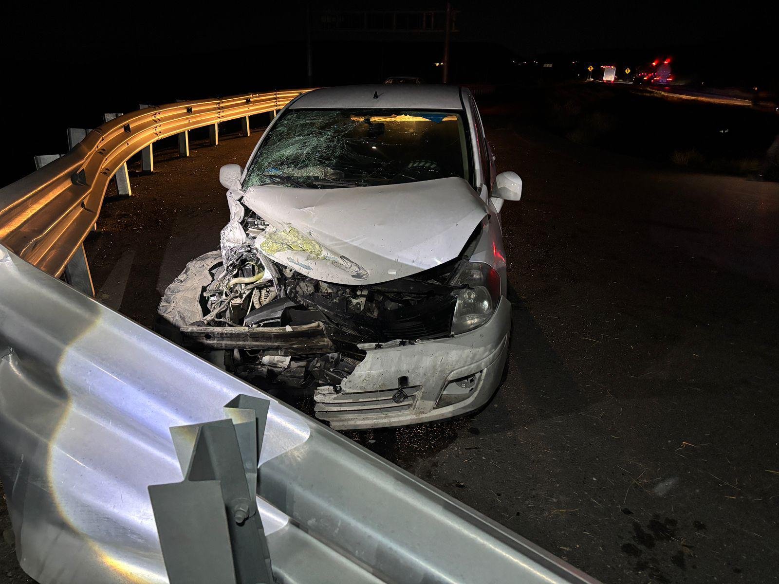 Justo en el kilómetro 13, debido al completo estado de ebriedad en el que conducía, al tomar un retorno no se percató de la presencia de la barra de contención, impactándose de manera frontal contra la estructura metálica.
