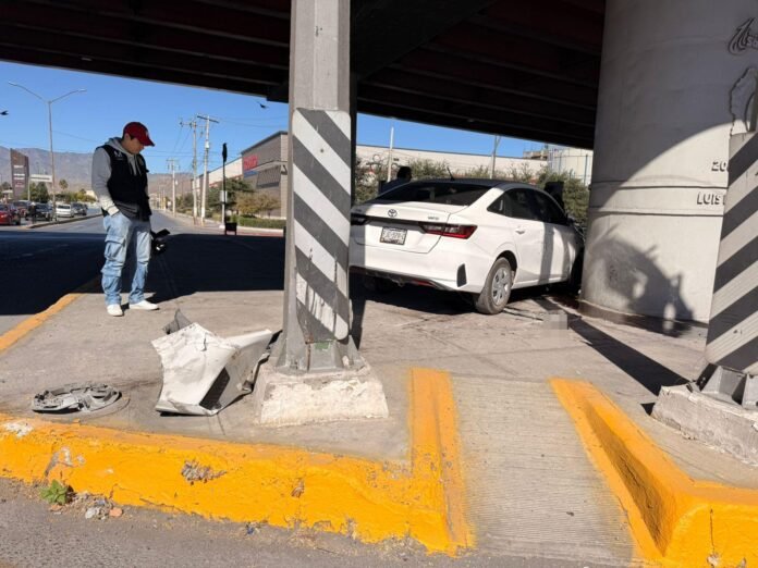 Un hombre terminó sobre la banqueta ubicada bajo un puente vehicular luego de verse involucrado en un aparatoso percance vial en el cruce de Venustiano Carranza y Colosio, en Saltillo.