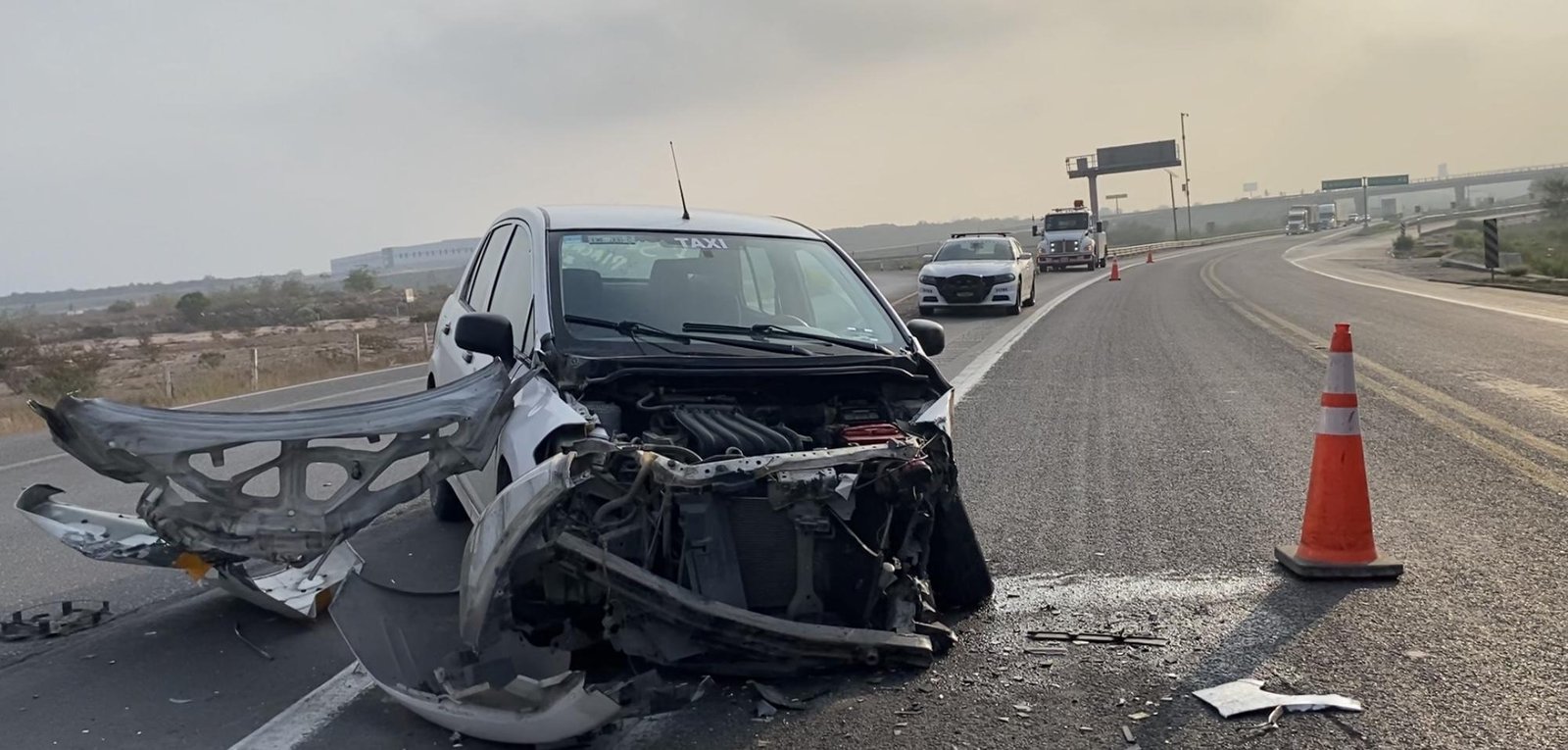 Durante la maniobra que realizó el ruletero, su taxi fue impactado por un tráiler que circulaba con dirección a Zacatecas, dando como resultado el automóvil, el cual presentó daños en la parte delantera.