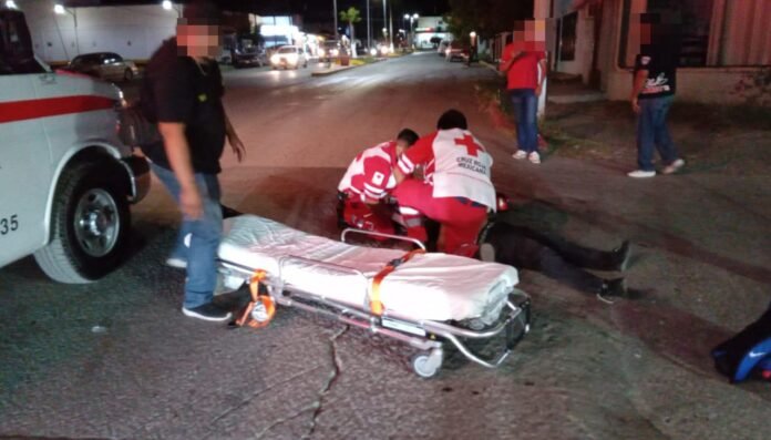 El percance fue reportado alrededor de las 20:00 horas ante la Policía Municipal, lo que provocó la movilización de unidades de emergencia. Paramédicos de la Cruz Roja acudieron al lugar y brindaron atención a un hombre de aproximadamente 50 años, quien presentaba golpes en la cabeza y una de sus piernas, por lo que fue valorado en el sitio.