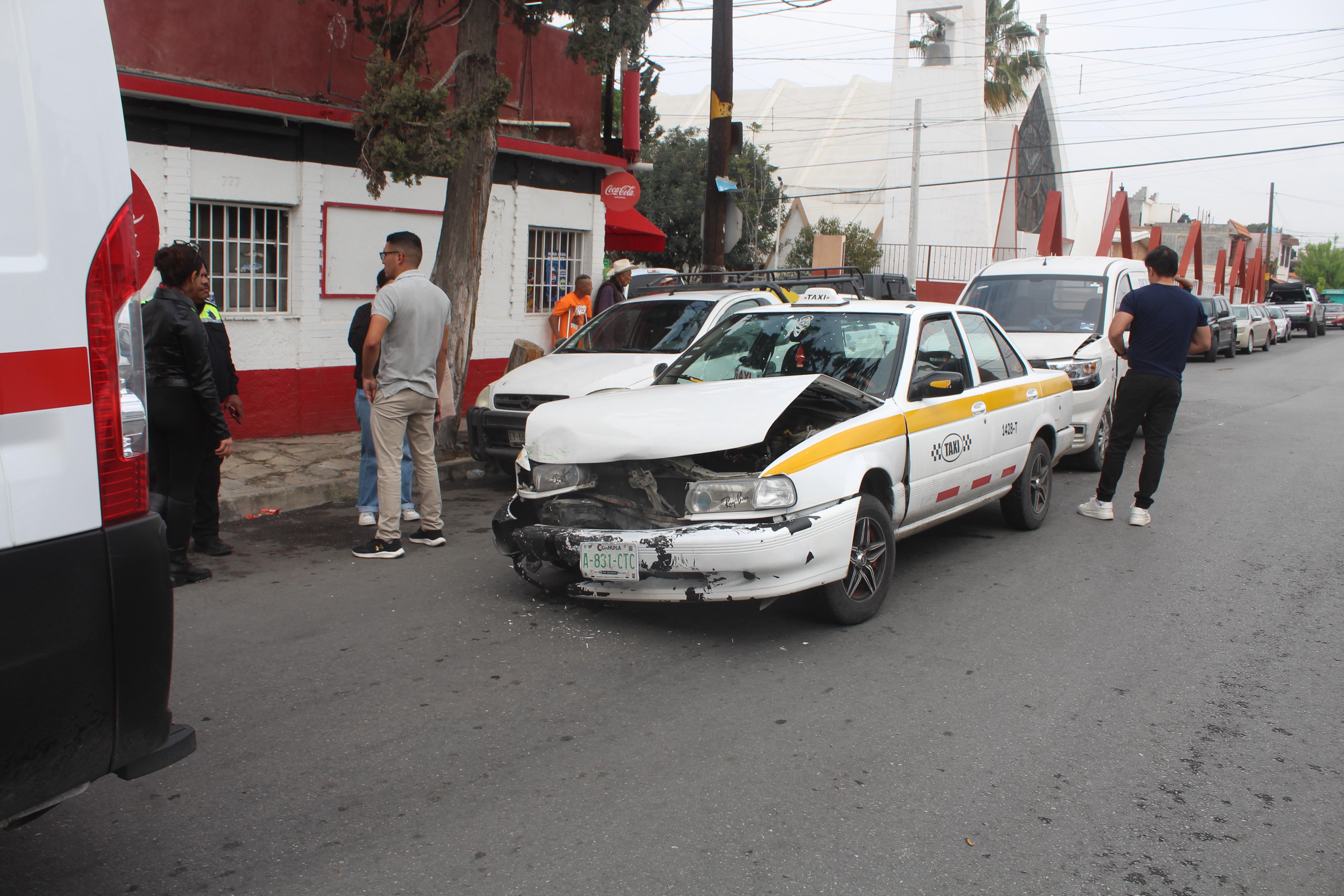 El vehículo obstruyó el paso de un Nissan Tsuru del servicio público local, conducido por Eusebio N., de 55 años. En el taxi viajaba una pasajera adulta mayor, quien resultó con severos golpes. Tras el impacto, el Nissan chocó contra un Dodge Attitude que se encontraba estacionado y terminó impactándose contra una base recolectora de fichas y tapas de plástico.