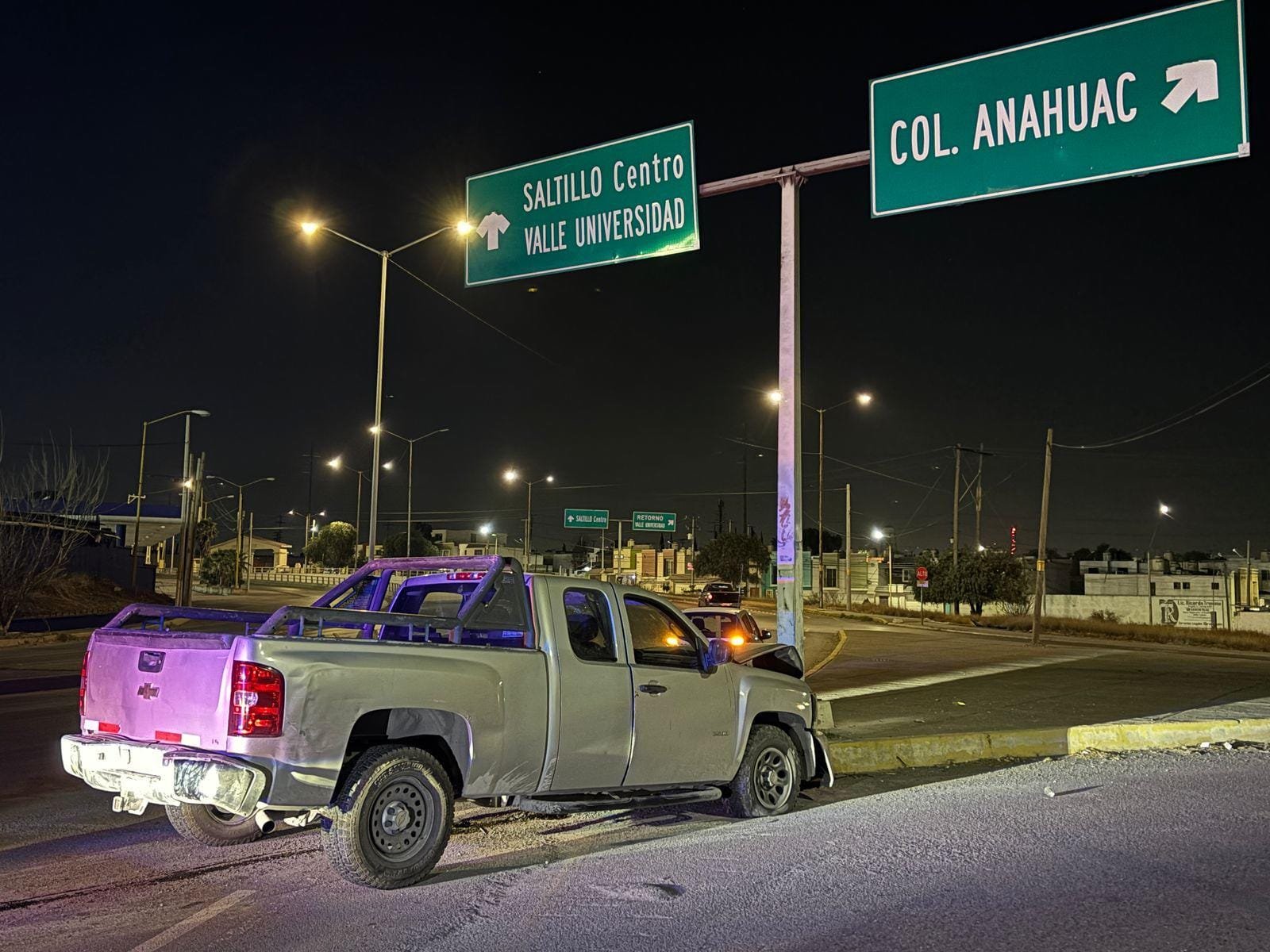 Un aparatoso accidente ocurrió durante la madrugada sobre el bulevar Vito Alessio Robles, en Saltillo, donde el conductor de una camioneta Chevrolet 2500 fue impactado por alcance y proyectado contra la base de un señalamiento tipo bandera, lo que dejó cuantiosos daños materiales.