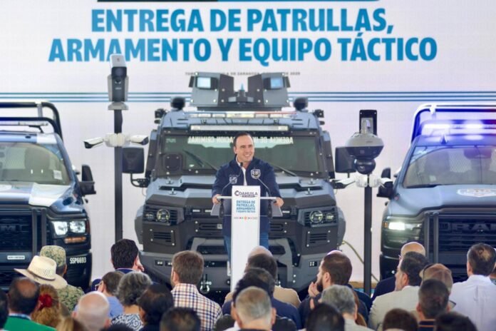 TORREÓN, COAH.- Con una inversión total de 433 millones de pesos, el gobernador Manolo Jiménez encabezó en Torreón la entrega de 160 vehículos operativos y tácticos, 209 armas, 258 mil municiones, más de siete mil uniformes y mil 215 becas para policías, peritos y ministerios públicos de todas las regiones del estado.