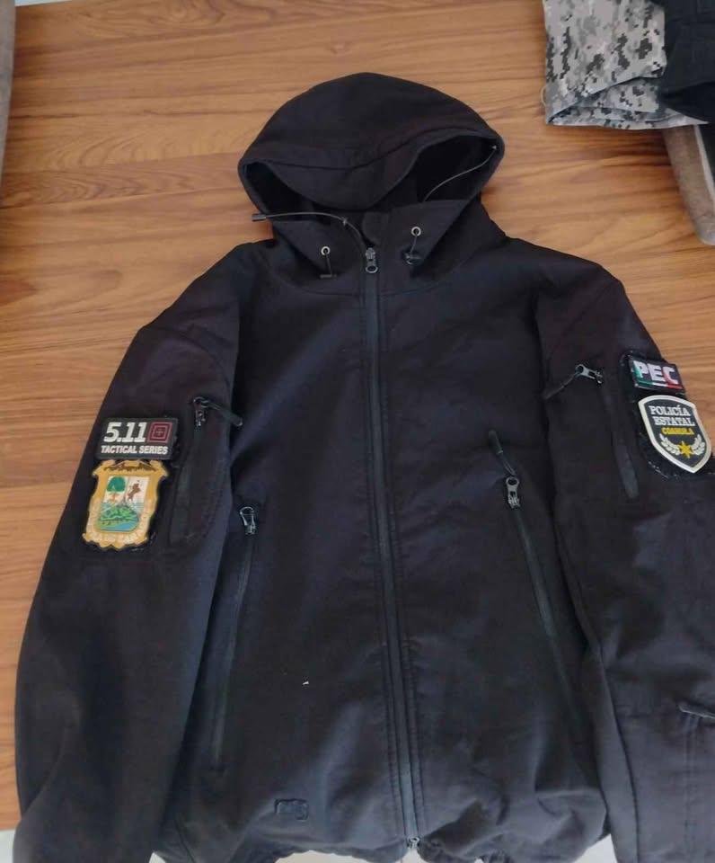 Uno de los parches pegados a la chamarra indica la leyenda “5.11 Tactical Series”. Además, se aprecian ocho cargadores y se aclara que están “abastecidos”.