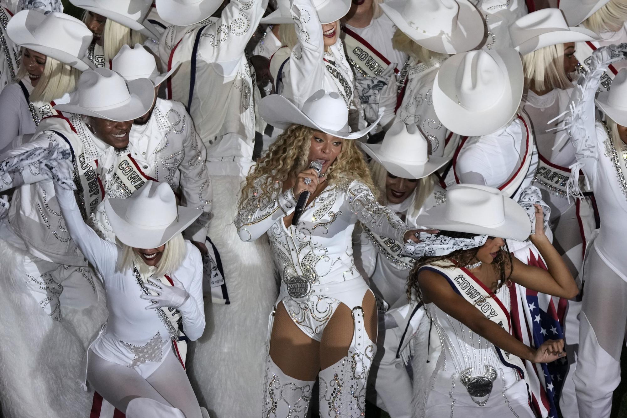 Montada en un caballo blanco, la estrella ganadora de 32 premios Grammy emocionó al público en Houston, su ciudad natal, con una actuación de casi 13 minutos el miércoles.