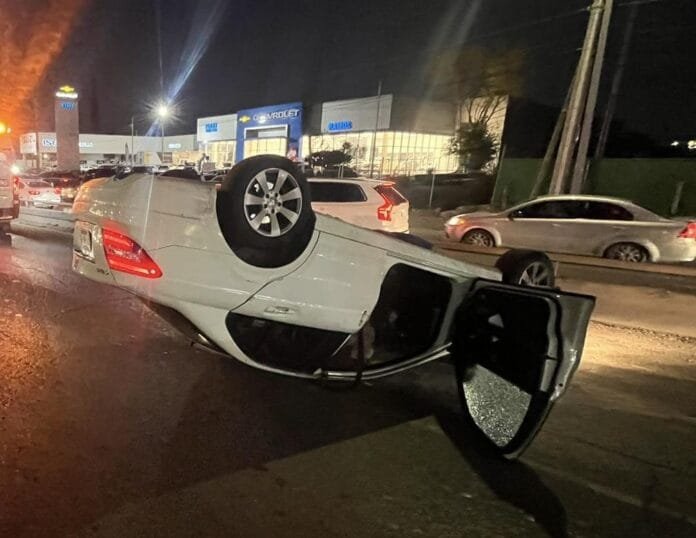 De acuerdo con los primeros reportes, el conductor de un Mercedes Benz perdió el control del vehículo y chocó contra la base de un puente que conecta con el bulevar Manuel Acuña. El impacto contra la base provocó la volcadura, y el vehículo quedó en los carriles laterales.
