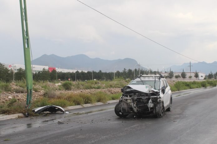 Lo hacía en sentido de poniente a oriente. Presume que las lluvias y el pavimento mojado fueron los factores que originaron la pérdida de control. La camioneta se fue a impactar de lleno contra la base de acero que sostiene el cableado eléctrico.Tras el impacto el vehículo sufrió pérdidas considerables en la parte frontal, mientras que la base de metal presentó también daños en la parte baja.
