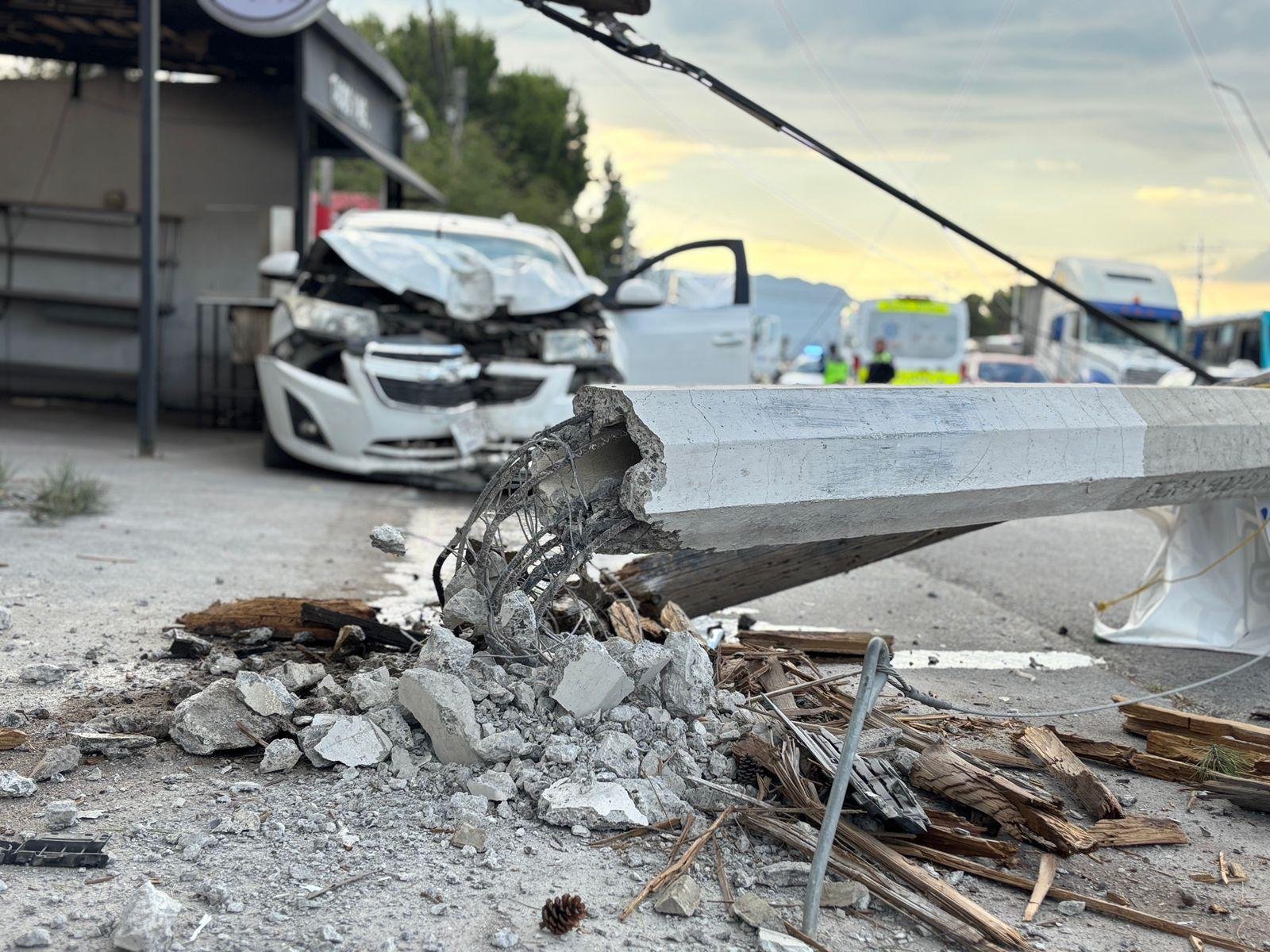 En cuestión de segundos, el vehículo se desvió de su trayectoria y se impactó contra una luminaria metálica y un poste de madera, ambos de servicio telefónico, los cuales terminaron derribados por el golpe.
