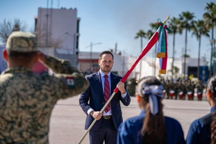 En un evento simultáneo con la Ciudad de México, la presidenta de la República, Claudia Sheinbaum, encabezó la jura de bandera a través de un enlace en vivo, mientras en Piedras Negras los funcionarios replicaban el juramento junto a las escoltas de diversas instituciones educativas y cívicas.