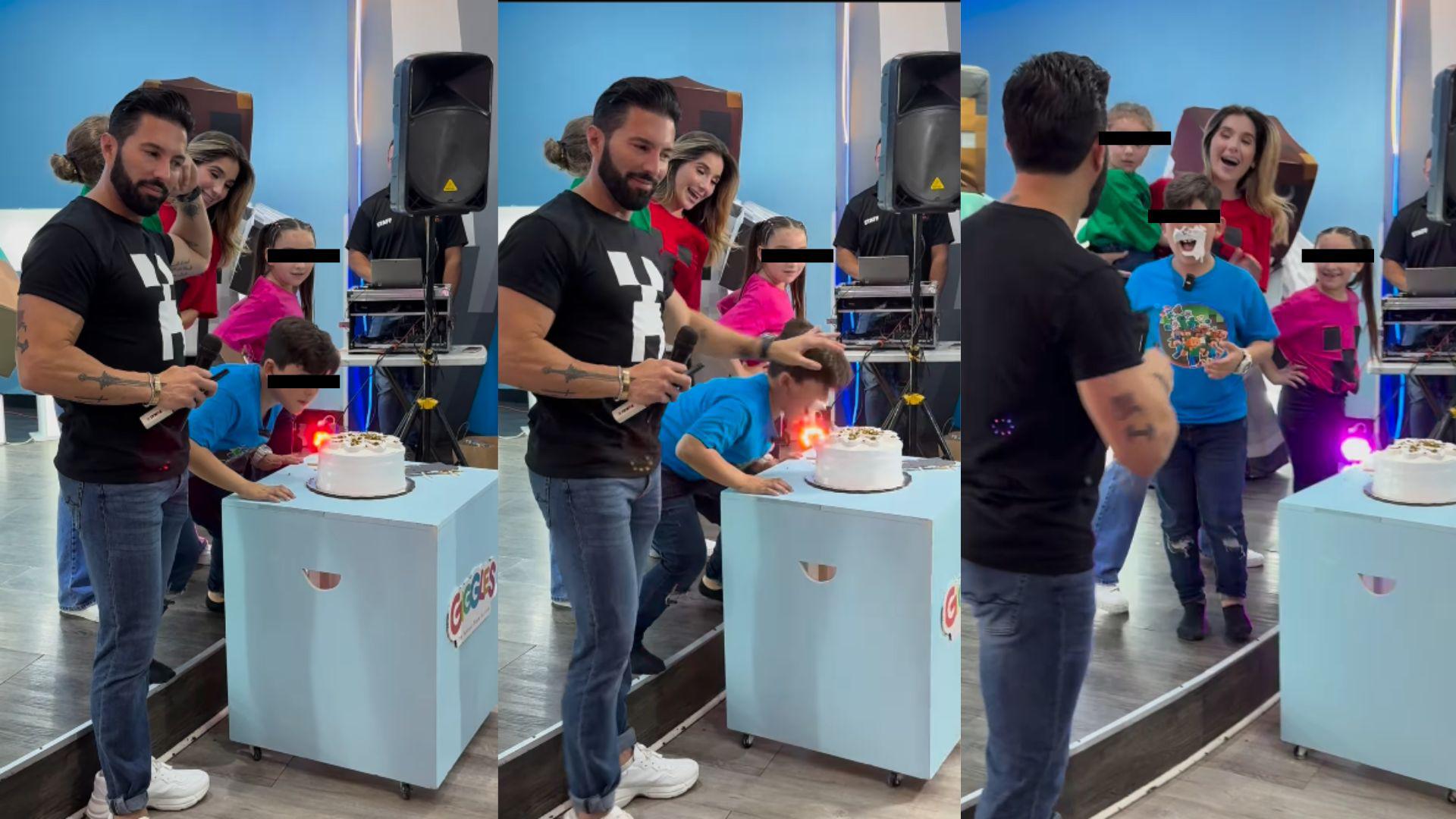 Critican a Poncho de Nigris por hacer llorar a su hijo en su cumpleaños, obligándolo a dar ‘mordida’
