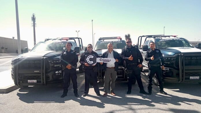 En la ciudad de Torreón, el alcalde de Cuatro Ciénegas, Ing. Víctor Manuel Leija Vega, recibió tres nuevas patrullas de manos del gobernador Manolo Jiménez Salinas. Esta entrega está destinada a fortalecer las acciones de seguridad y vigilancia en el municipio, reforzando la paz y el orden en la comunidad.