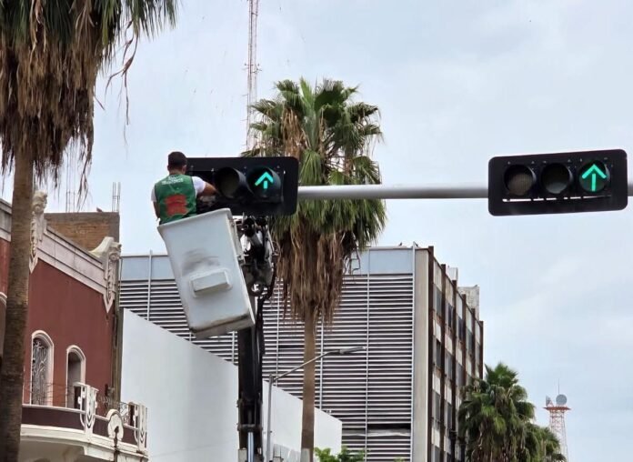 Los trabajos incluyen revisión de líneas de alimentación, cables de luces, puesta a tierra, sincronización y tiempos de cambio, así como la inspección de cabezales, cajas de control y estructuras metálicas.