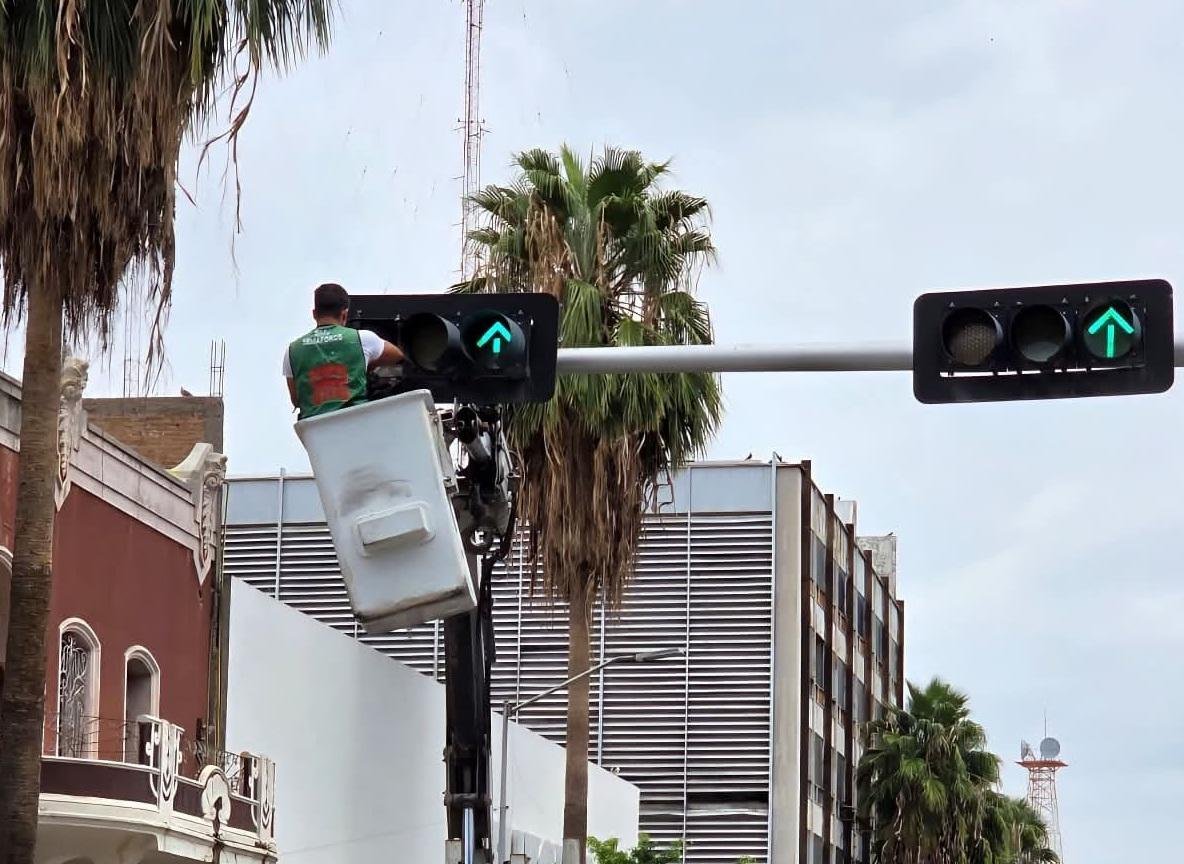 Dan mantenimiento preventivo a semáforos en el Centro de Torreón