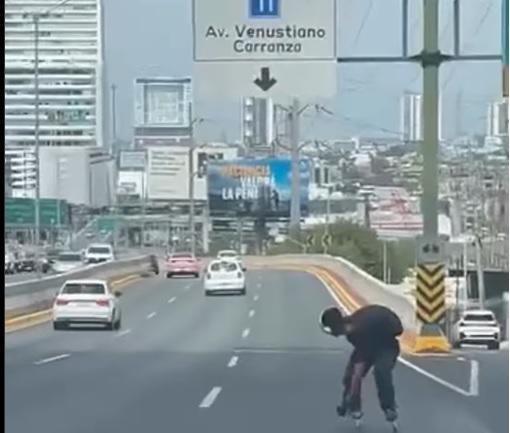 Monterrey, NL.— Sin casco, de reversa y con audífonos, un joven fue captado patinando sobre la avenida Venustiano Carranza, una de las más concurridas de la ciudad, en un video que rápidamente se viralizó y reavivó el debate sobre la falta de regulación para scooters, bicicletas eléctricas y patines en la zona metropolitana.