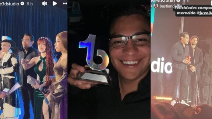 Enfundado con una camisa y pantalón de color negro con unos tenis blancos asistió ‘Juve’ a la ceremonia para subir al escenario a recoger el premio al “inspirar”. “Hola. Muchas gracias, en primero gracias a Dios por permitirme llegar acá. A mis papás que seguramente están viendo la transmisión, los arquitectos de mi vida”, dijo nervioso y serio a la vez el simpático creador de contenido.