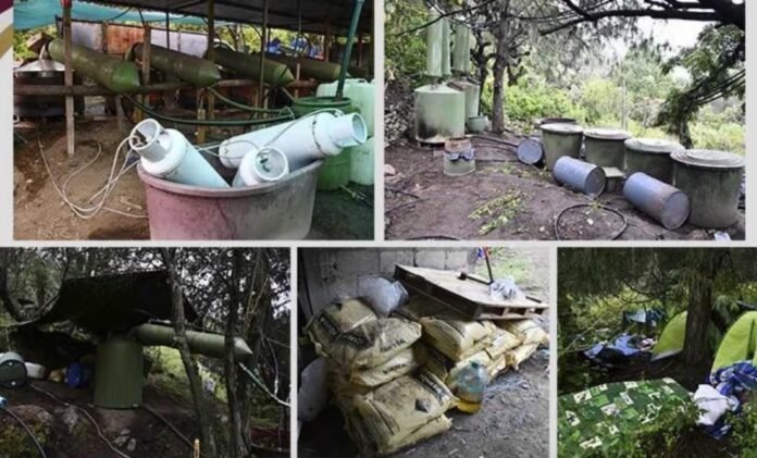 PACHUCA, HGO.- Un campamento que operaba como narcolaboratorio en la localidad de Hueyotlipa, municipio de Acatlán, fue desmantelado tras cuatro cateos simultáneos realizados por fuerzas federales y estatales.