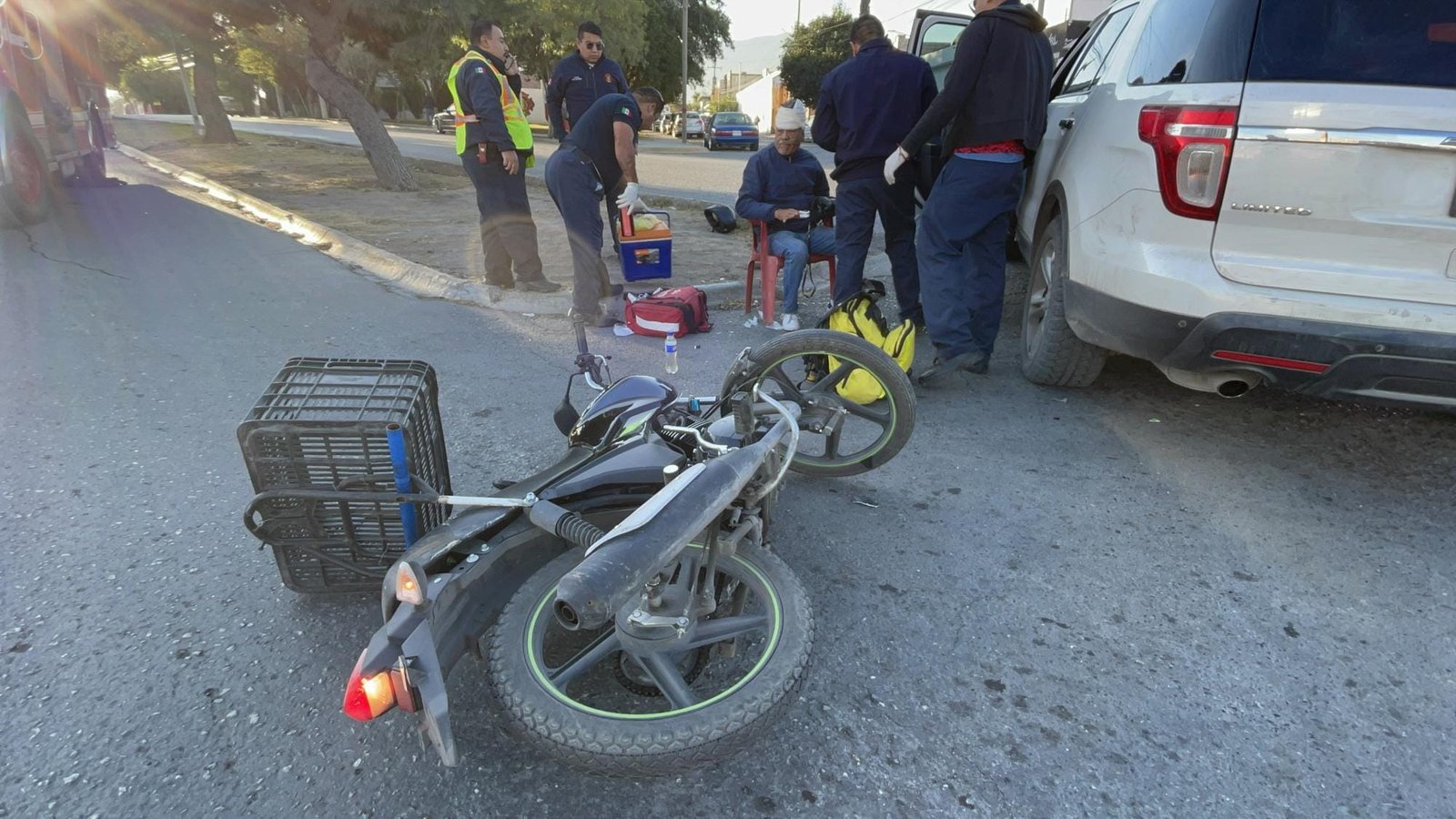 El motociclista, identificado como Salvador “N”, de 60 años, viajaba a bordo de una Italika con dirección al bulevar Fundadores cuando, al cruzar con la calle 7, una camioneta se atravesó en su camino. El impacto lo lanzó al pavimento, donde quedó lesionado.
